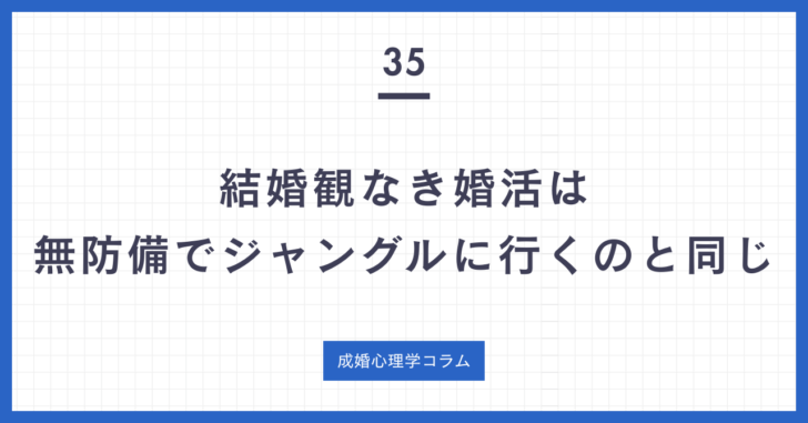 【第35話】結婚観なき婚活は、無防備でジャングルに行くのと同じ