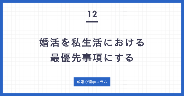 婚活が私生活における最優先事項になっているか 婚活がうまくいかない人の多くに共通しているのは、私生活において、婚活が趣味…